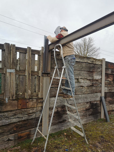 La protection des cibles est refaite, grâce aux précieux conseils de notre charpentier en chef. A noter que de Jean-Marc a mal calculé la sous hauteur d'une poutre et s'est fait une petite coupure du cuir chevelu ; heureusement que les Alsaciens ont la tête dure....